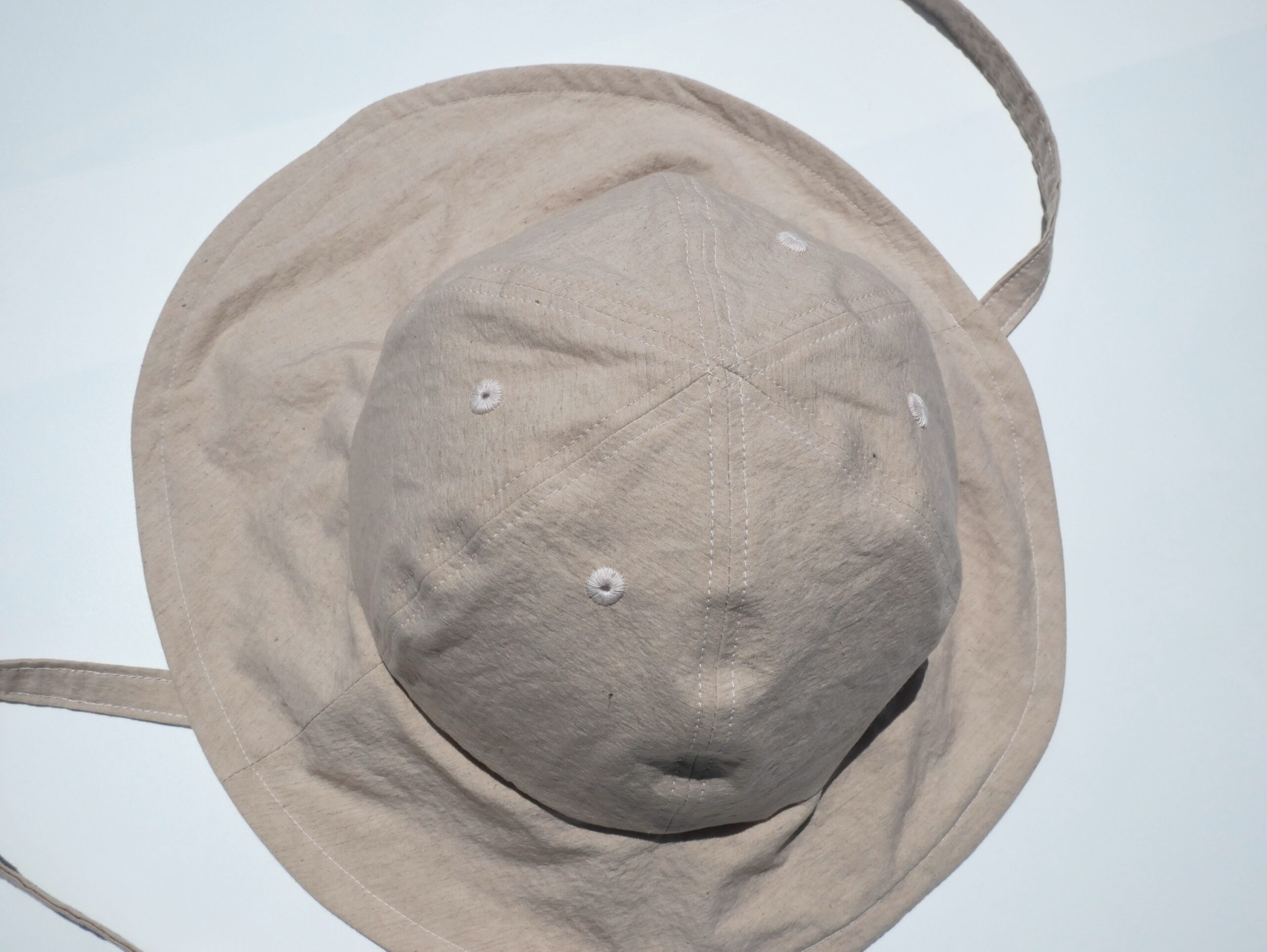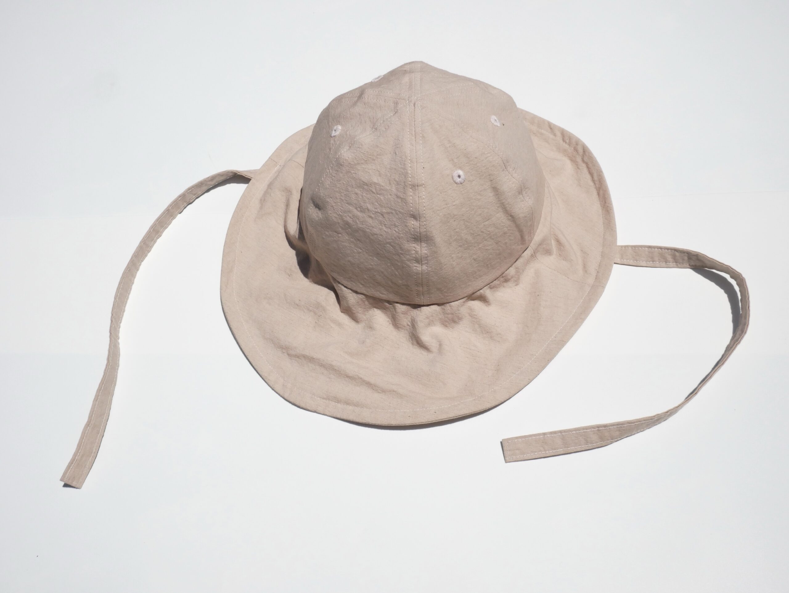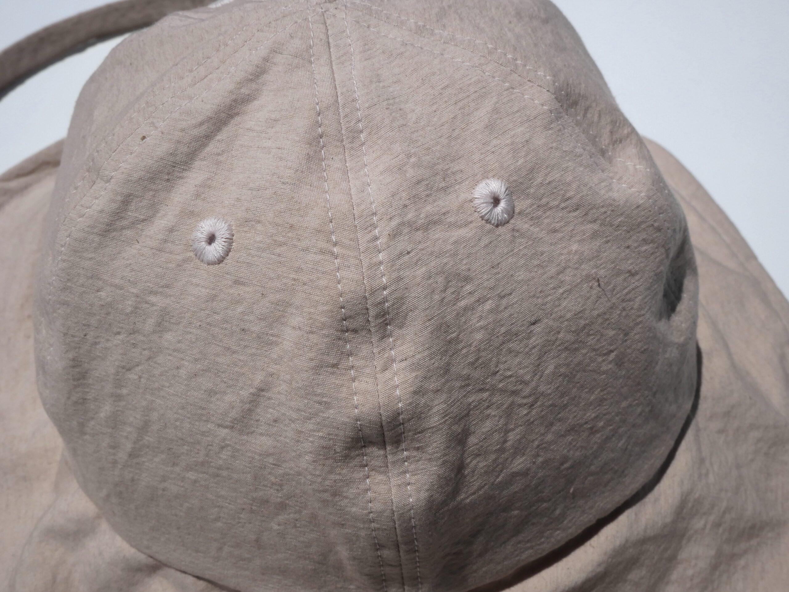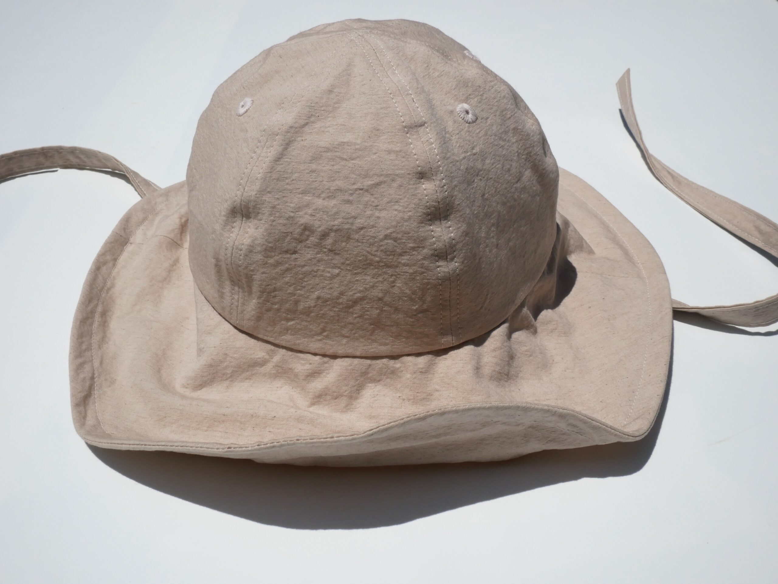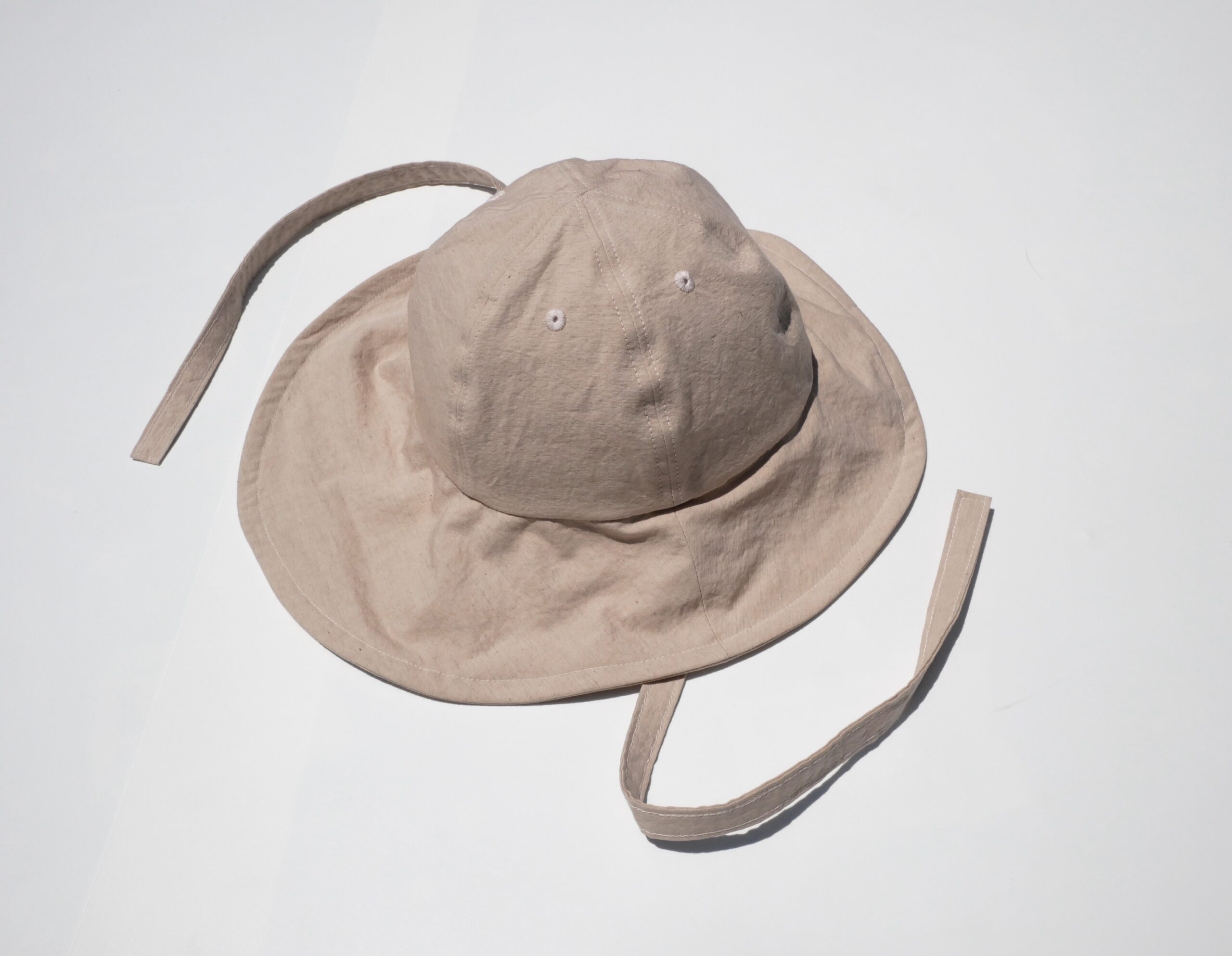 ツバには細いワイヤーを入れているので、形を自由に変えられます。クラウン(頭が収まるところ)は一般的にキャップで使用される6パネルの形に。日本人が特に良く似合うシルエットに仕上げました。
